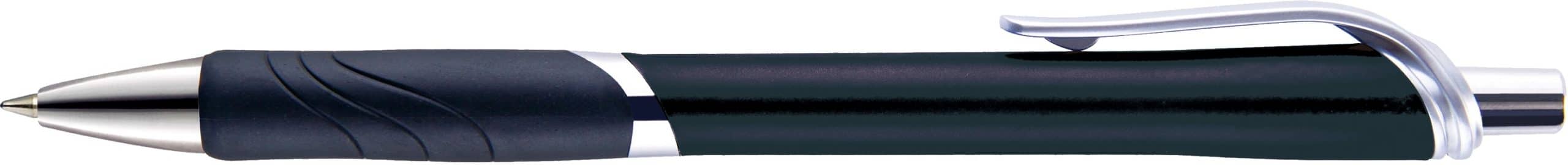 A reliable and stylish ballpoint pen featuring a smooth plastic barrel and a comfortable wave grip for effortless writing. Equipped with quality ink and a refillable design for long-lasting use. The easy-to-use plunger mechanism allows quick click action, while the sturdy clip keeps the pen securely attached to notebooks, pockets, or planners. Perfect for everyday writing, note-taking, and office tasks, this writing instrument combines functionality, comfort, and convenience in one sleek design! Complies with Prop 65. 6″ L x 0.4″ W x 0.6″ H